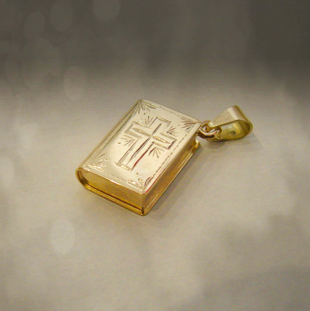 This custom 14ct yellow gold Bible pendant was individually designed and crafted by hand, created as a meaningful keepsake with deep personal significance. Featuring an engraved cross and detailed edges, the piece combines refined artistry with timeless symbolism. One of a kind and made with care, it stands as a unique expression of faith and craftsmanship.