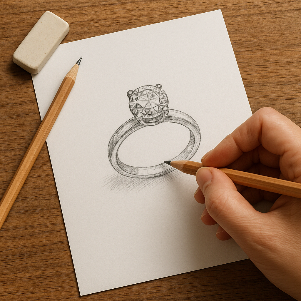 Every ring begins as a quiet idea — drawn by hand, shaped in gold, and finished with devotion.