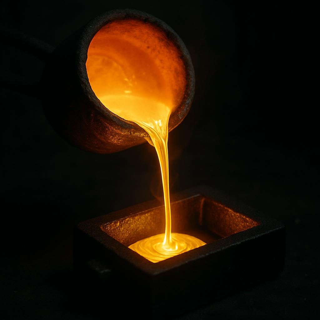 From sketch to reality, the gold is carefully melted and poured, transforming raw material into a malleable form ready to be shaped. At this stage, precision and patience guide every movement: each bend, fold, and contour is crafted to achieve harmony between strength and delicacy. The molten metal responds to the artisan’s touch, translating the original vision into a tangible, sculptural form that will catch the light and tell its story from every angle.
