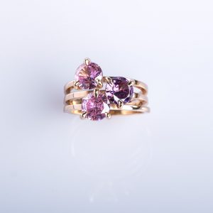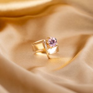 Wide gold band, slender accent wire, and a luminous pink gemstone — the Ember Ring is sleek, versatile, and refined.