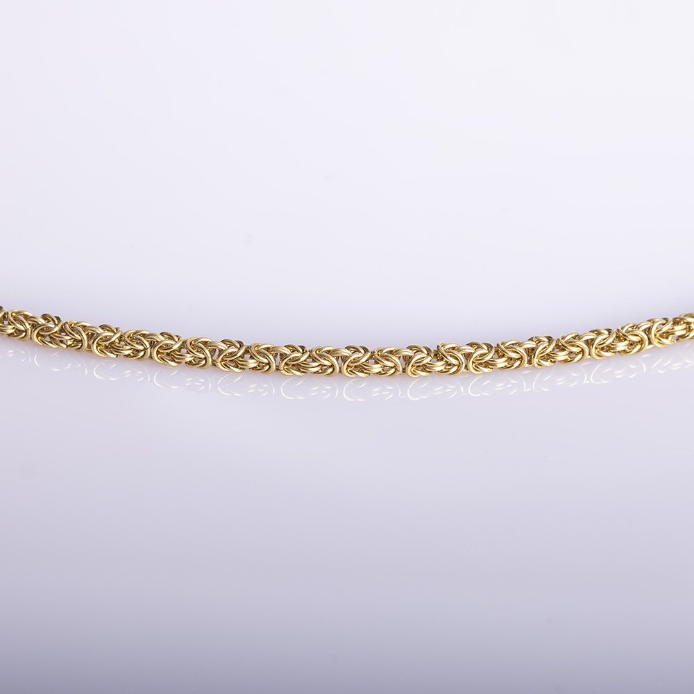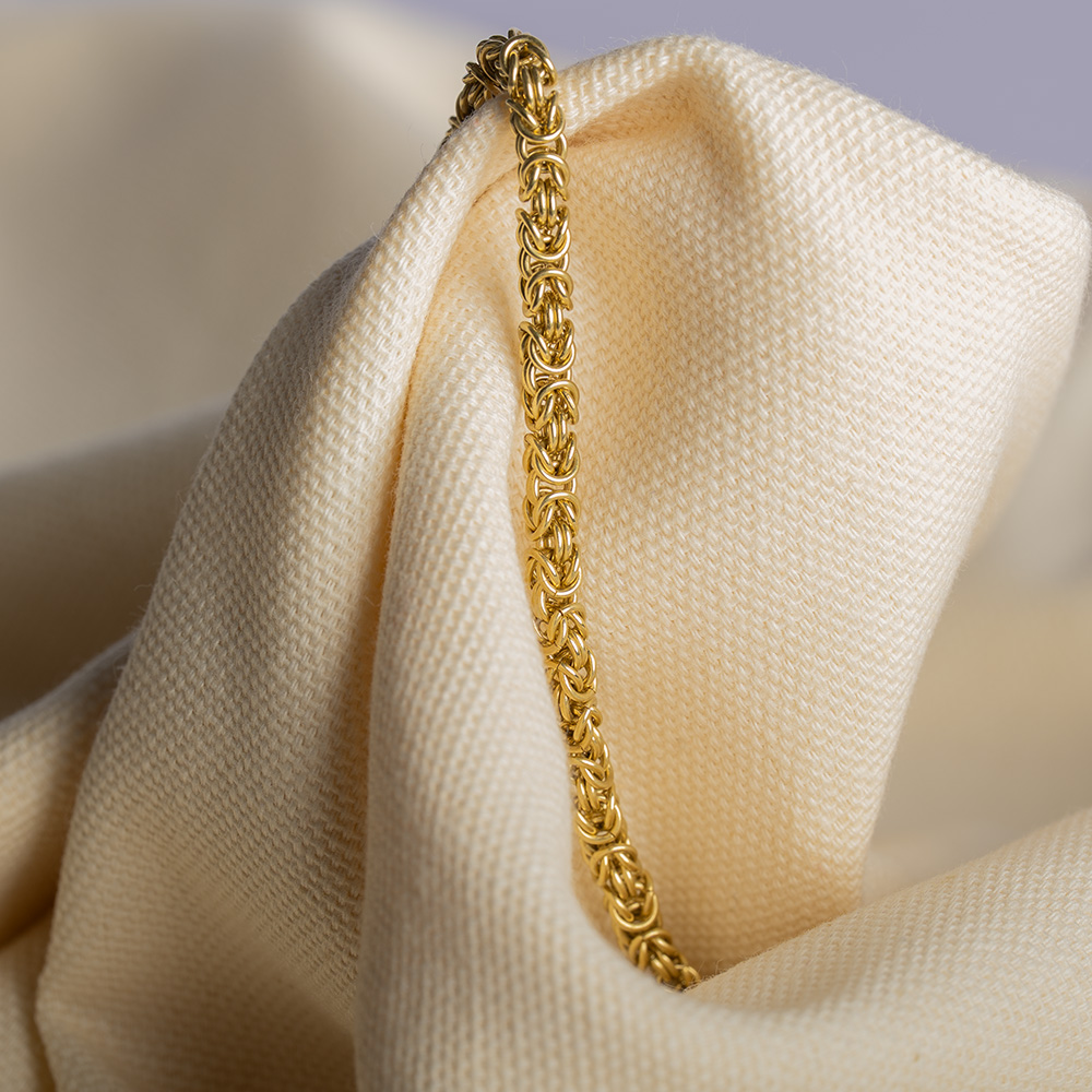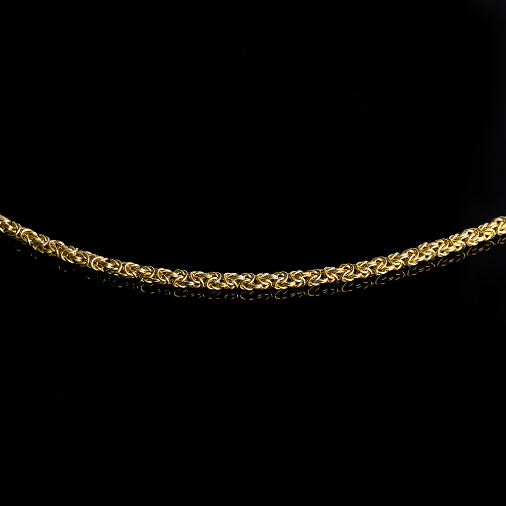 The Byzantine Gold Necklace is the pinnacle of handcrafted luxury — a piece created link by link, entirely by hand, using traditional goldsmithing techniques. Forged from solid gold and measuring 3.8mm in thickness, this chain carries a naturally heavy, substantial feel, reflecting its dense construction and meticulous craftsmanship.