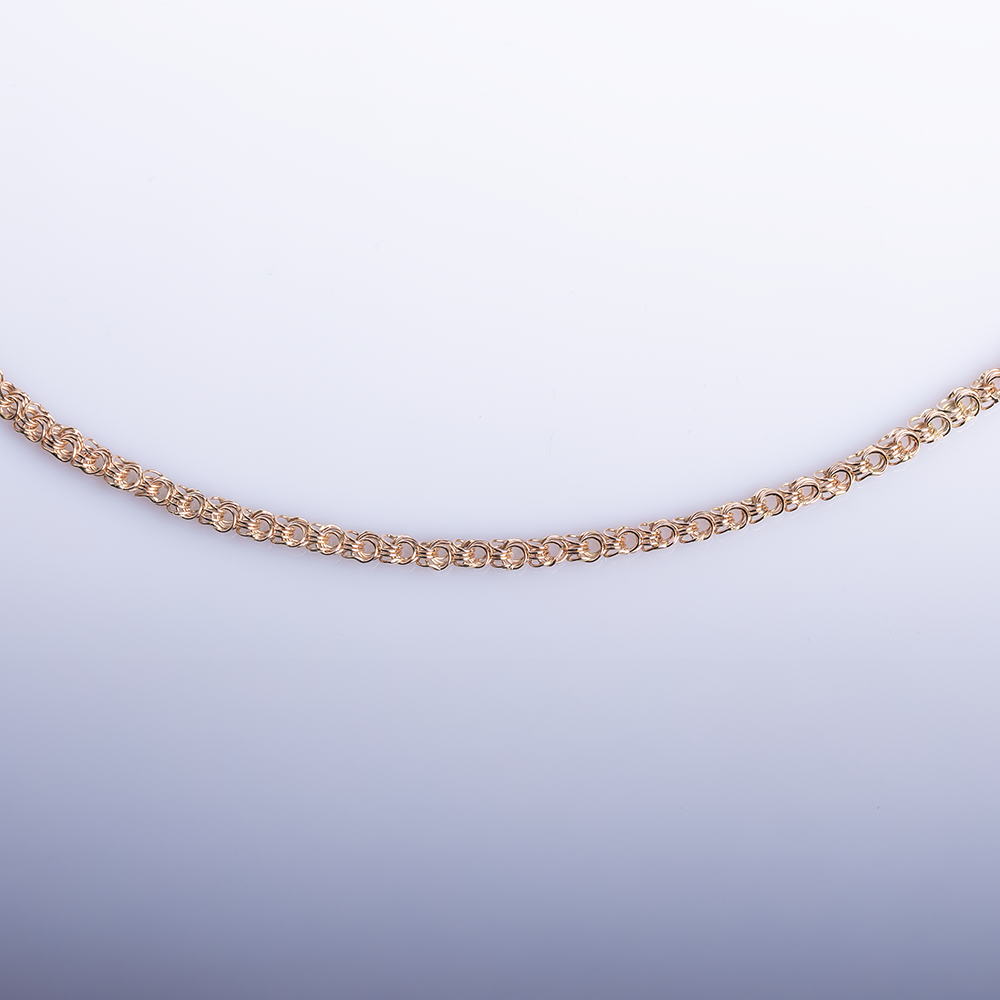 Each link is carefully shaped and finished by hand, creating a smooth, fluid drape with quiet architectural strength. Measuring 5mm in width, the chain offers a confident presence that feels substantial without being excessive — striking the ideal balance between refinement and weight. The necklace reflects light subtly as it moves, revealing its quality through proportion, finish, and form rather than excess.