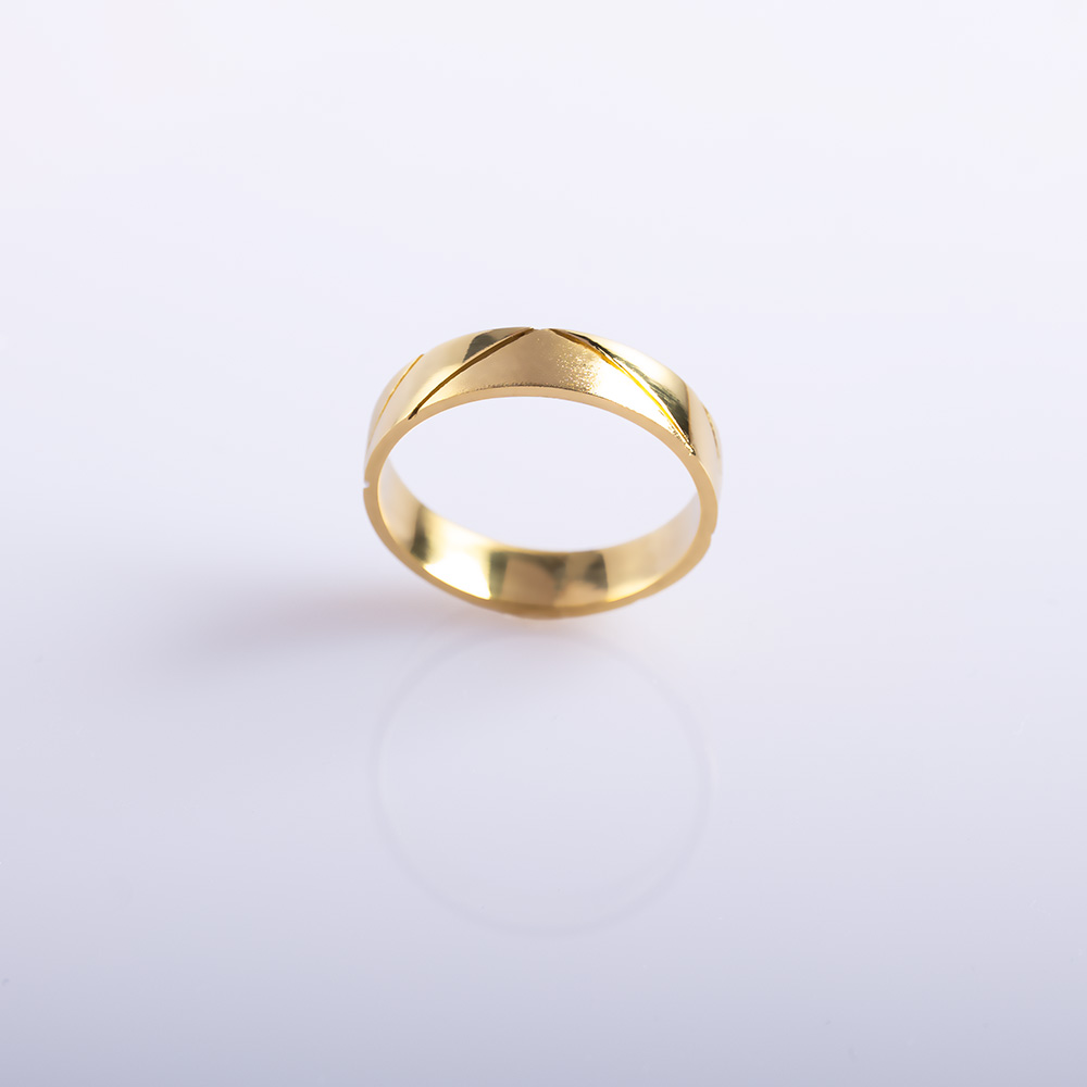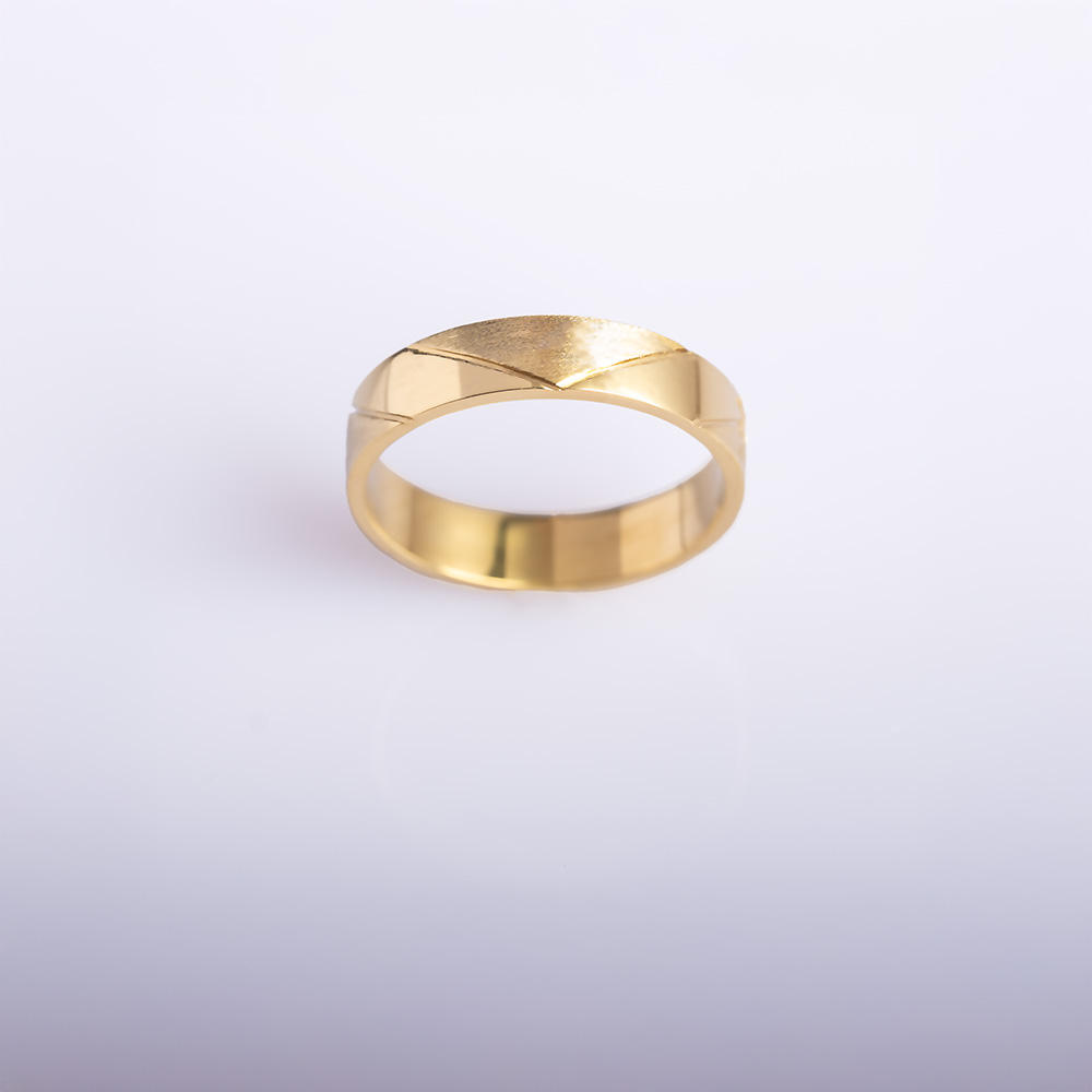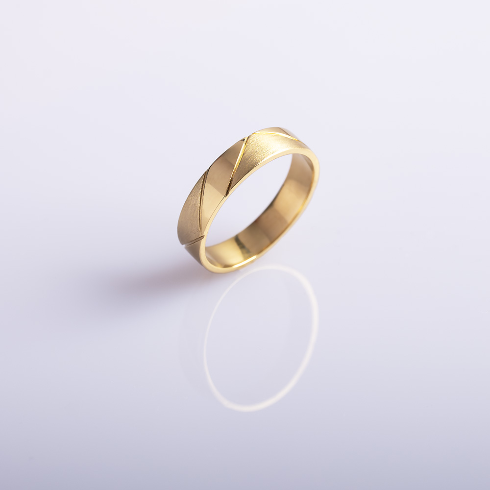 Each facet of the prism wedding band is individually finished to accentuate the relationship between satin texture and high-polished clarity. The pattern feels both structured and fluid — a contemporary interpretation of classic geometrical motifs, executed with meticulous craftsmanship.